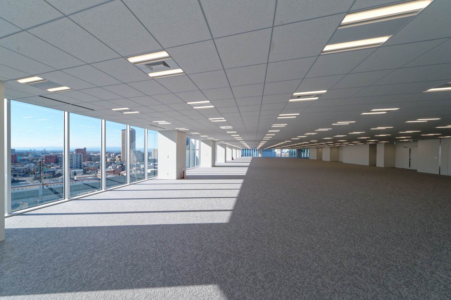 基準階は、約500坪規模の無柱空間を確保しています。