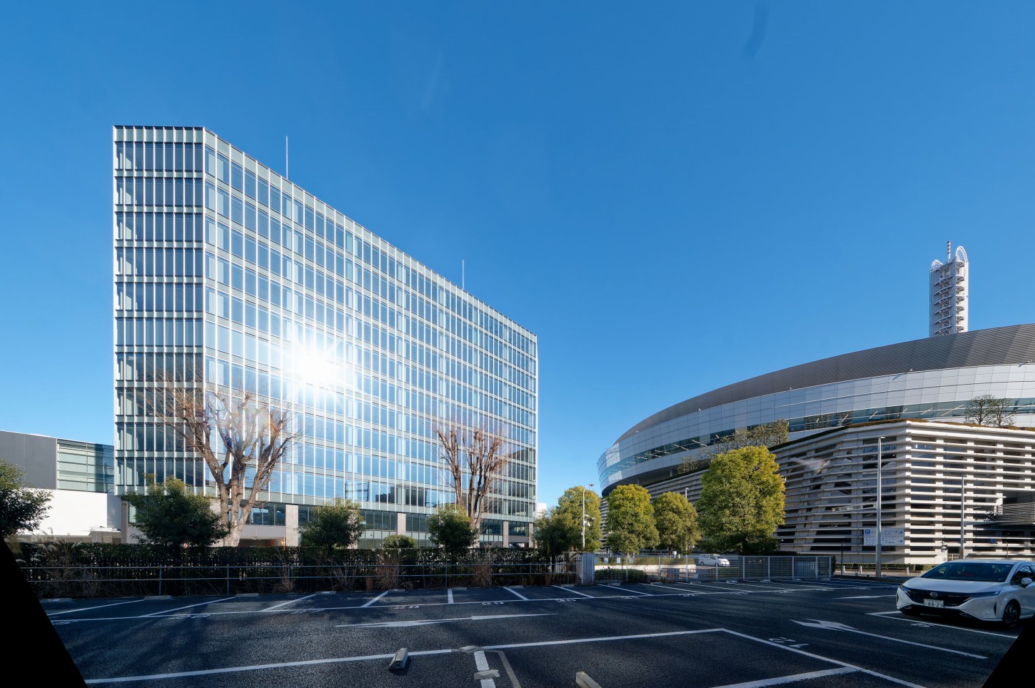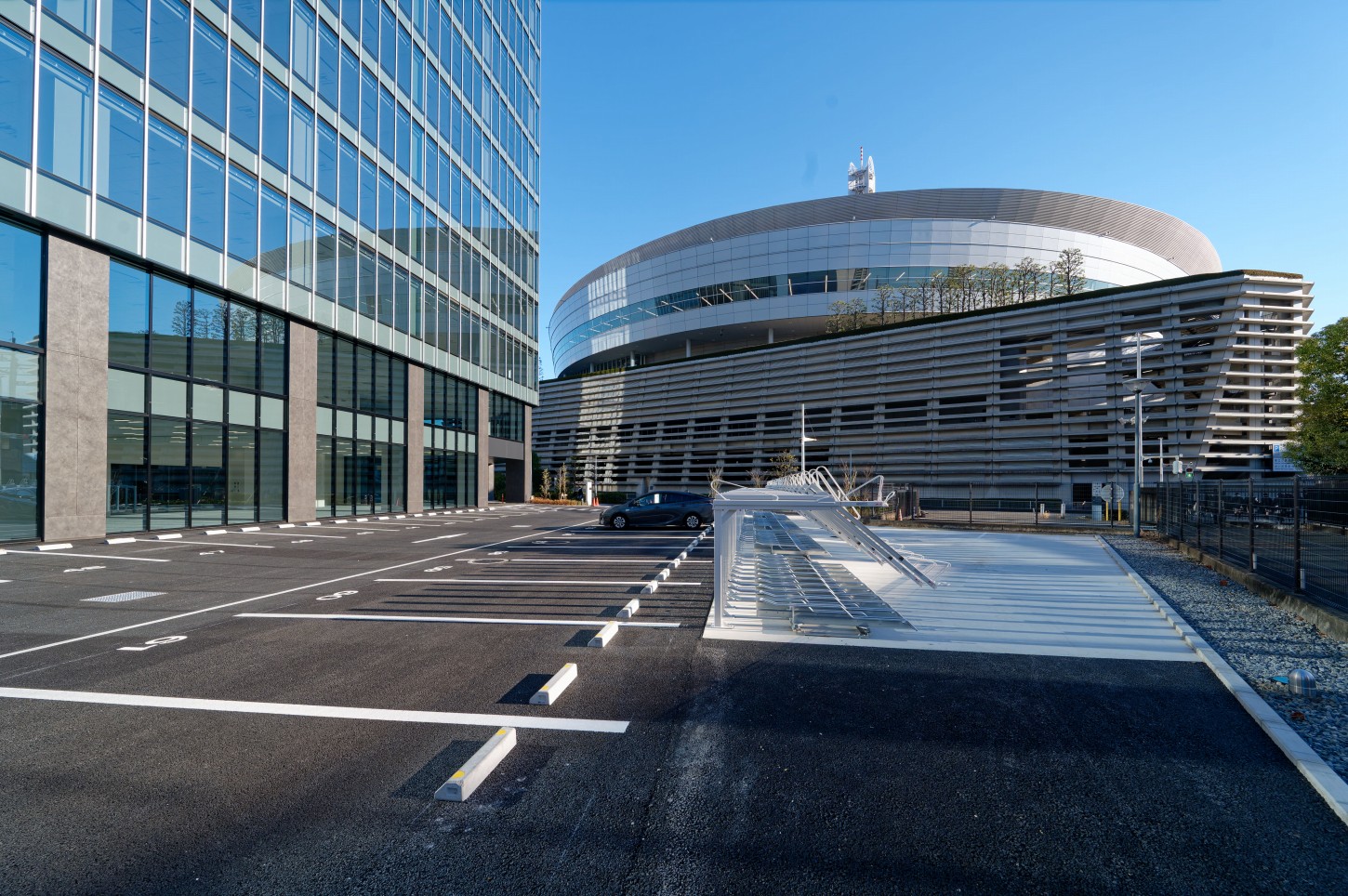 車利用を前提としたオフィス運用にも対応できるよう、既存棟と合わせて約500台規模の駐車場を確保しています。