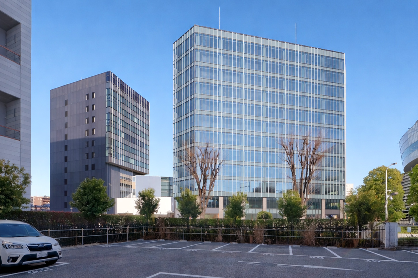新築棟単体ではなく、既存棟と一体となったオフィス群としての完成形が、本建物の特徴です。